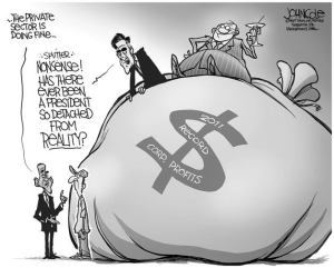 A take on the private sector rhetoric by the left and the right by John Cole.