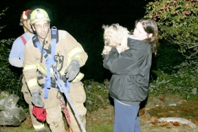 Spike is one lucky dog. Fire District 3 firefighters rescued the 22-pound carren terrier after it had tumbled…