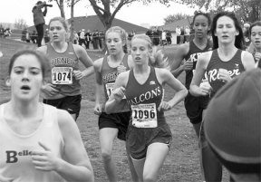 Sophomore Erica Johnson finds herself back in the pack during Saturday's cross country state finals in Pasco. She finished 84th but