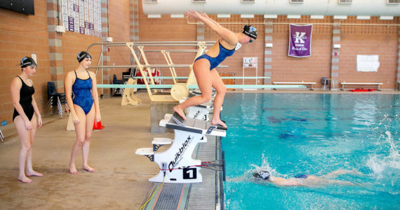The South Whidbey swim relay team practice their relay handoffs on Wednesday, Nov. 9, 2022, at Kamiak High School in Mukilteo, Washington. (Ryan Berry / The Herald)