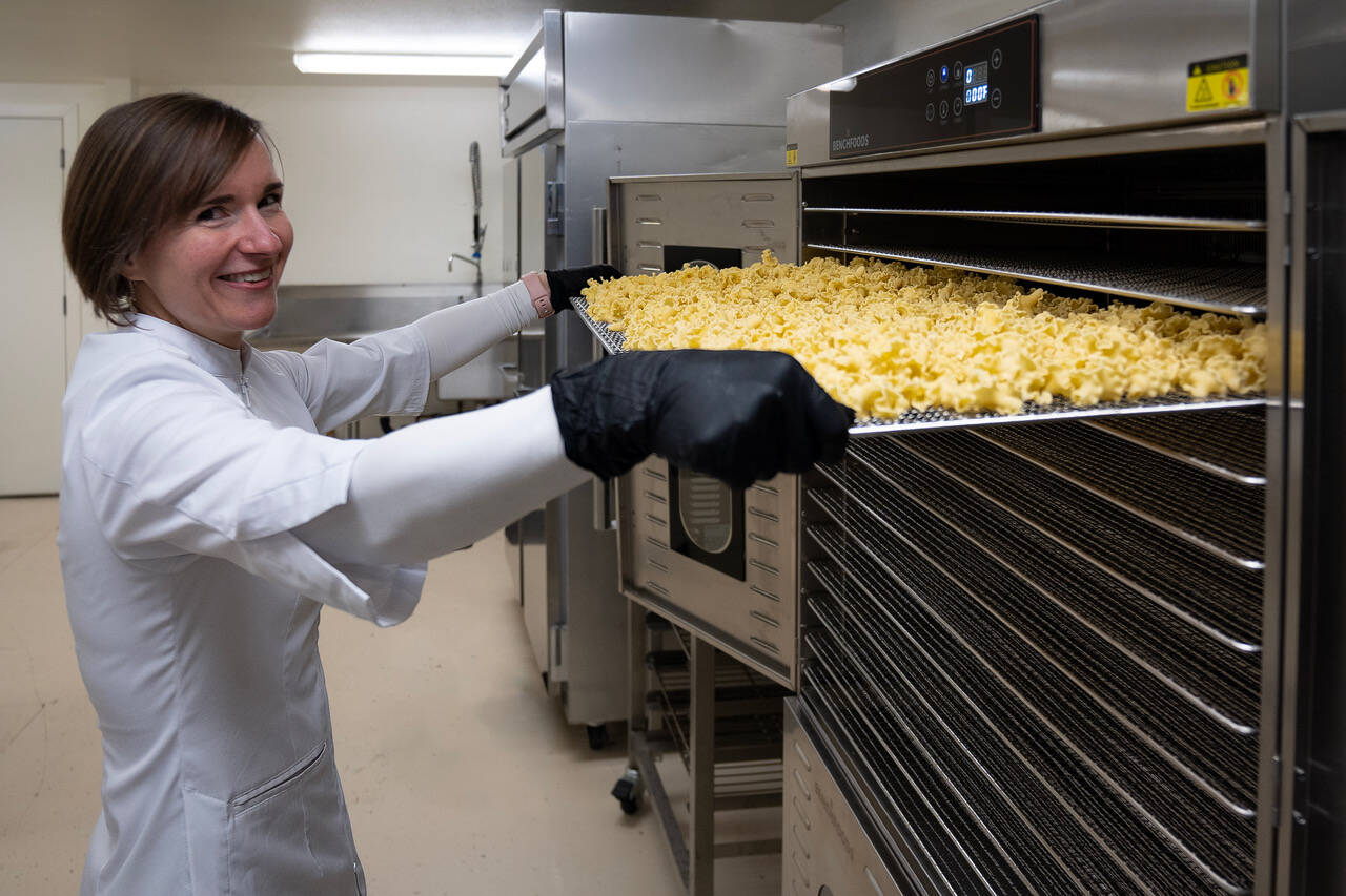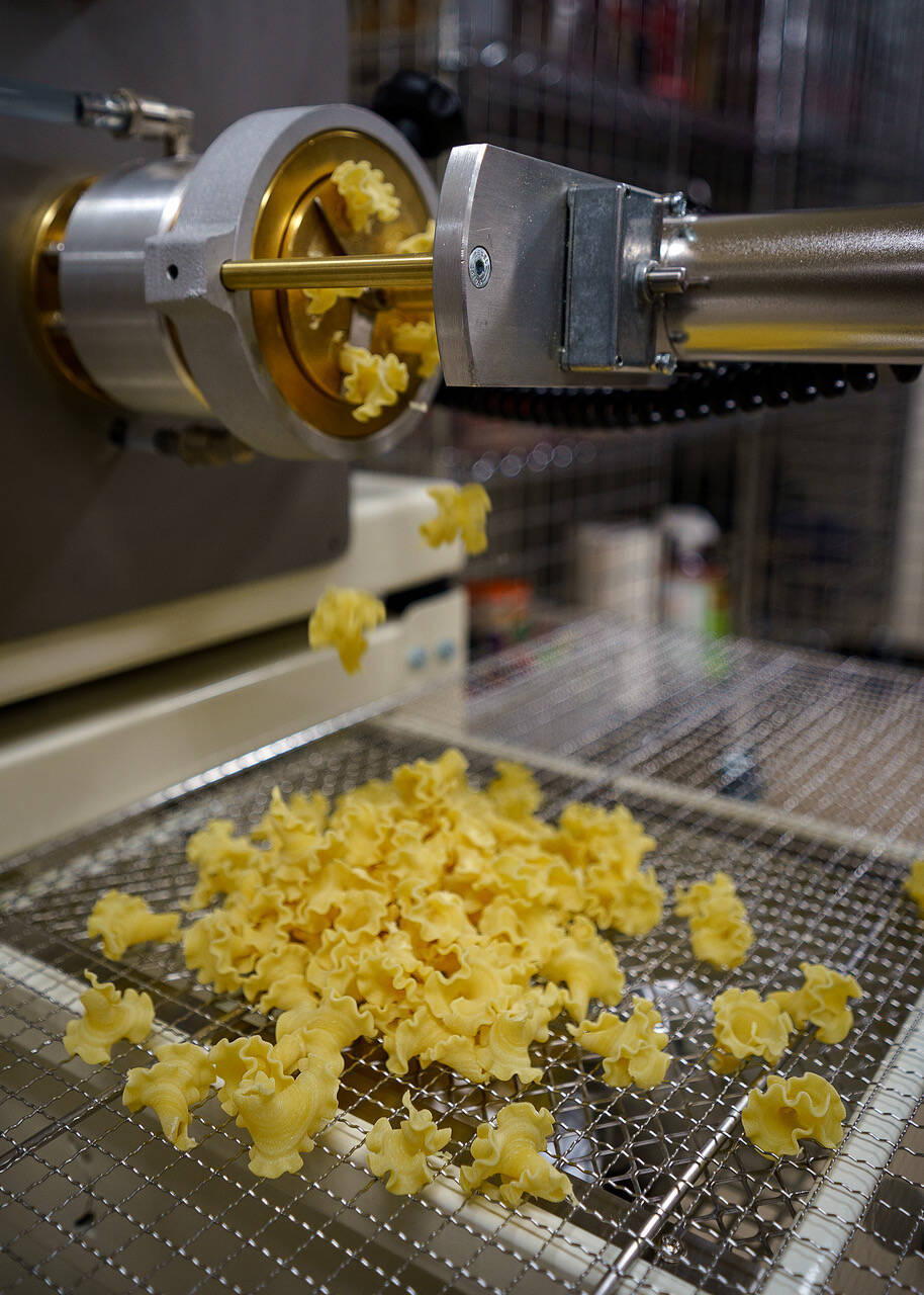 To make her pasta, Echo uses Italian semolina flour, fresh baby spinach and whole eggs, all of which are organic. The dough is mixed and extruded using a commercial pasta machine made in Italy. After about six to eight hours of drying – which is the old Italian way – the pasta is ready to be packaged in compostable materials.