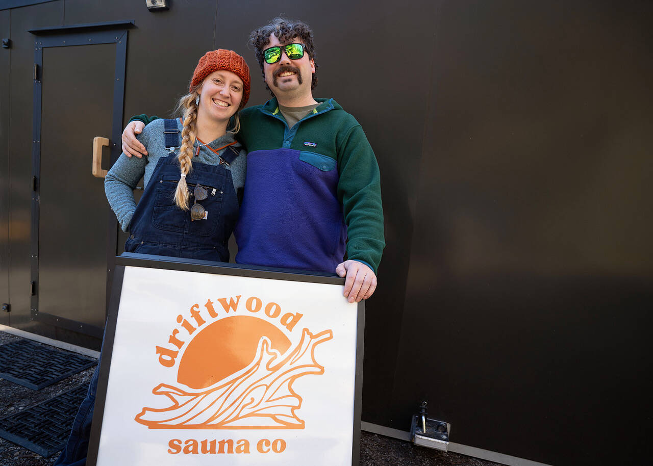 Earlier this month, Central Whidbey couple Caris and Ryan Tucker launched Driftwood Sauna Co, a mobile sauna on wheels, with the assistance of Caris’ brother Nate Ristoff and his wife Rockie. Bathers can enjoy temperatures ranging from 140 to 180 degrees Fahrenheit generated by a wood-fired stove stacked with rocks; adding water to it creates the steamy atmosphere characteristic of saunas, though it’s common courtesy to ask others before pouring.