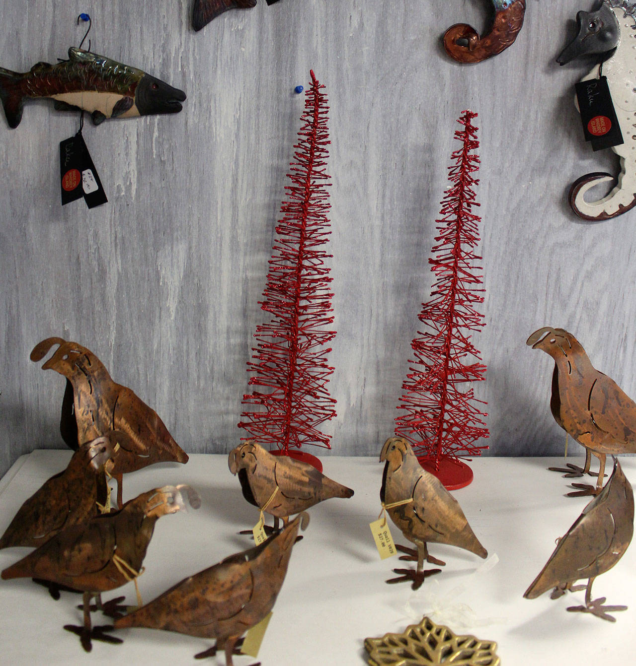 Artists are from all over the island. Steve Nowicki from Oak Harbor, for example, has a display of small metal quails, which is representative of his company, Shock-N-Awe Metal Works.
