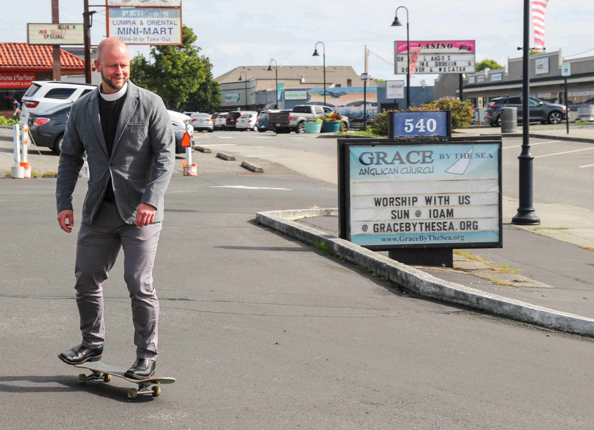 After Rev. Kyle Logan bid farewell to Whidbey to start a new church in Oregon, a new pastor has rolled into Grace by the Sea Anglican Church.