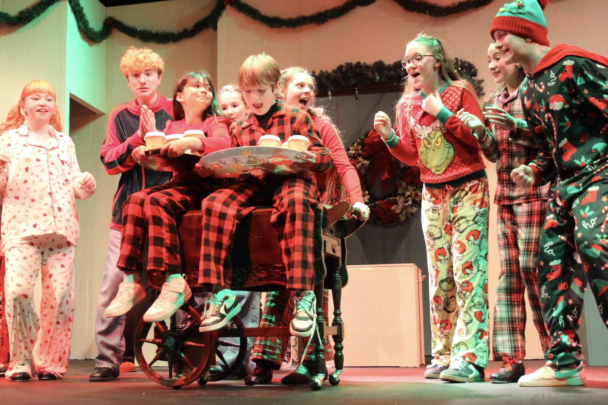 Built in just six rehearsals, the production showcases the cast’s creativity and dedication, from learning new songs on their own to assembling their own costumes. The actors deck out in everything from sparkly dresses to cozy Christmas pajamas.
