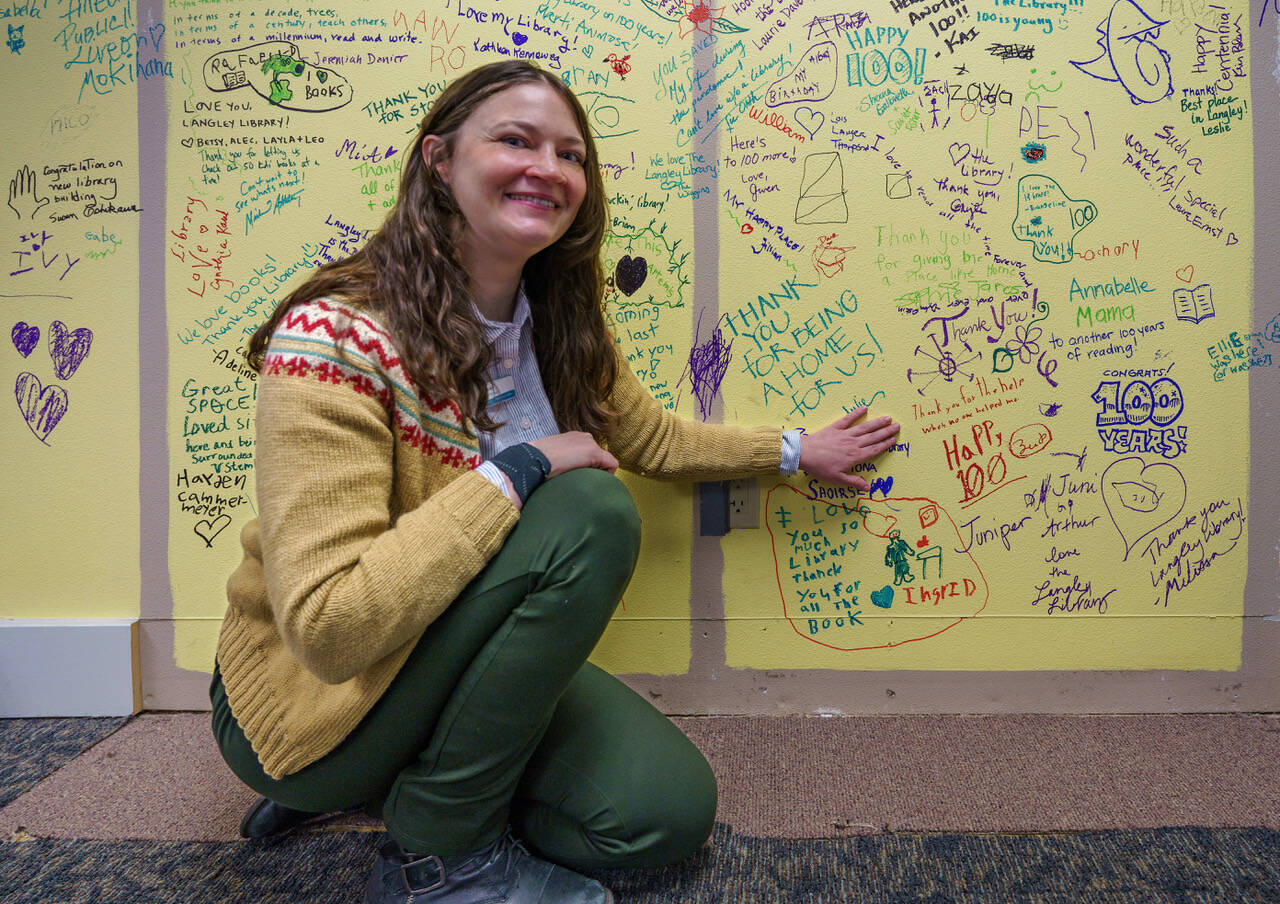Earlier this month, the little library in the Village by the Sea hosted a centennial celebration. People shared their memories of the library and took turns signing and drawing on a yellow wall in the children’s area of the building that will be covered over once construction begins on an upcoming renovation project that will transform the well-loved space.