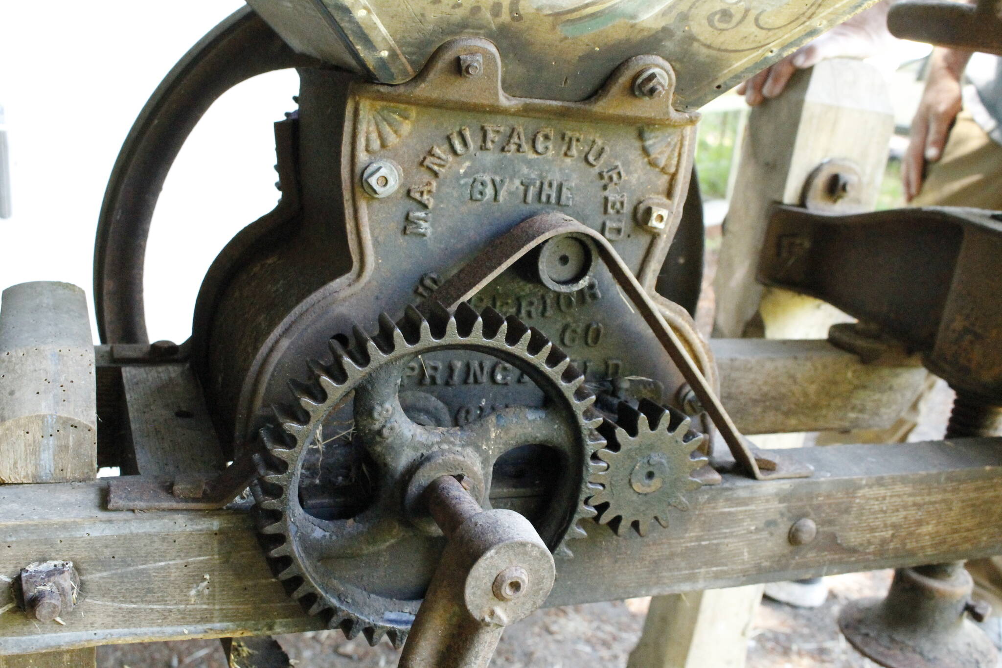 Writing on the side of the press declares that it was manufactured by the Superior Drill Company in Springfield, Ohio in 1872.