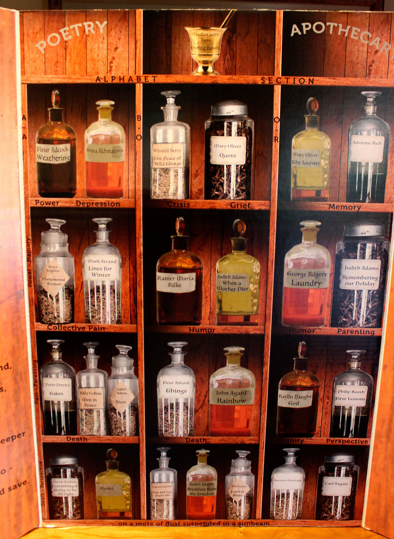 In November, Humanities Washington chose Adams again as a speaker out of about 90 applicants, this time for her idea about poetry’s restorative powers. She said she came upon the concept while visiting her native England last summer. She noticed a bright hardback book called “The Poetry Pharmacy” by William Seighart.