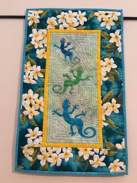 “I love being part of this group,” said Carolyn Lancet, co-president of Quilters on the Rock. “And I hope that everyone who comes to the library to see our display gets some pleasure from it.”