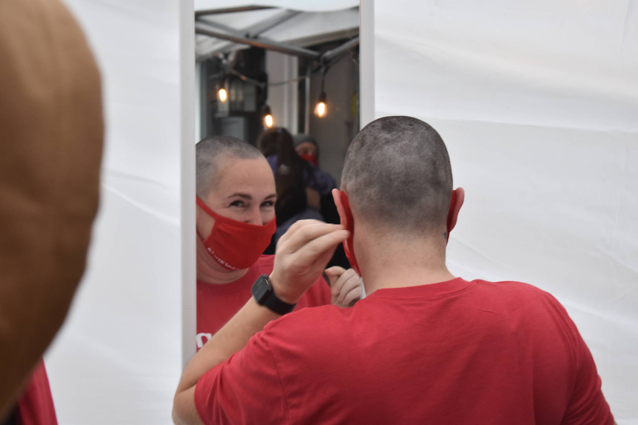 After Cash shaved McFadyen’s head, the first person to step up to the chair was Cheryl Lueder. She has worked with McFadyen for years and wanted to do something to support Cash.