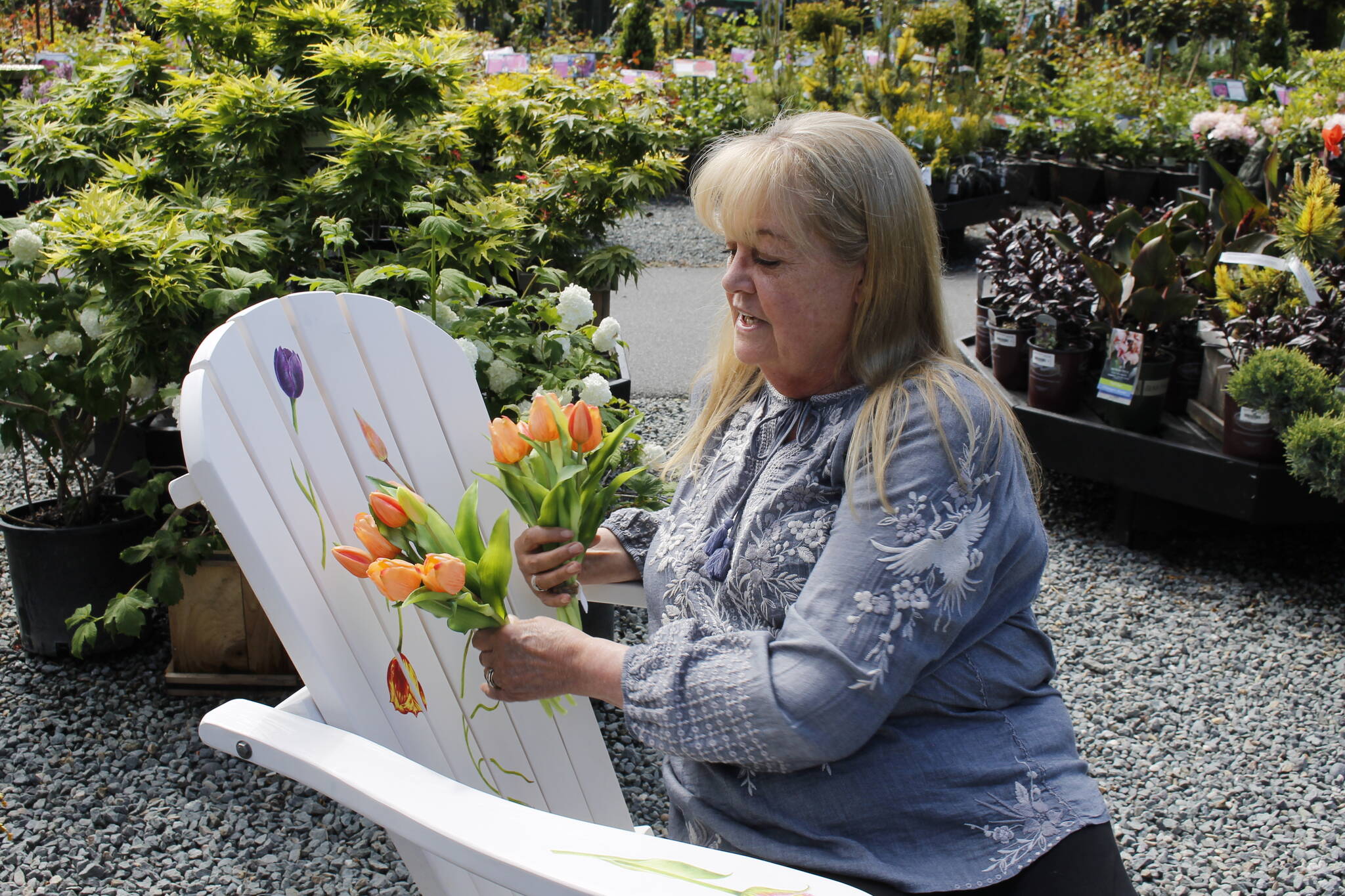 Over at Bayview Farm and Garden, Deborah Montgomerie’s chair “Tulip Mania” can be found.