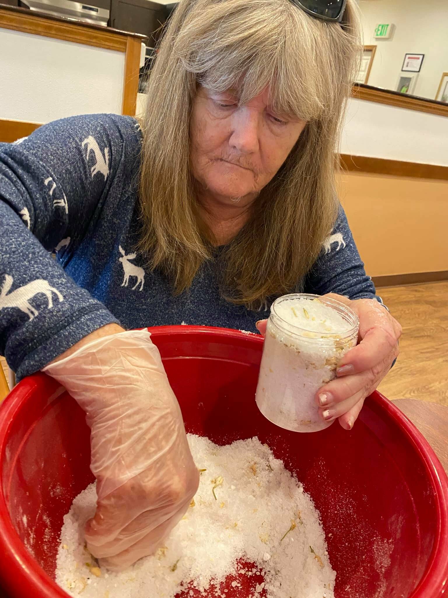 Live-in residents at HomePlace Memory Care in Oak Harbor make and sell sugar scrubs, epsom salt bath soaks, candles, wax melts and bars of soap to raise money for Alzheimer’s Disease care, research and advocacy.
