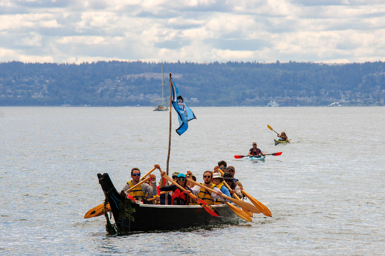The Blue Heron Canoe Family has taken many annual journeys over the years. This year’s expedition embarked July 7 from Edmonds City Park following two days of meeting and going over the events schedule. The group paddled to Whidbey Island, making stops in Clinton and Sandy Point, also known as Brown Point, before going on to Langley.
