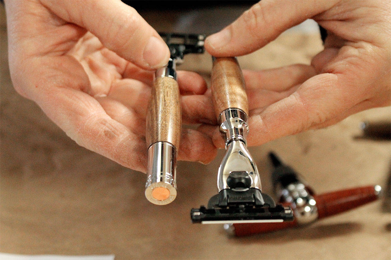 Hawkins has turned several products on her lathe, including cups, wine corkscrews and razor handles. She also makes furniture and signs out of wood.