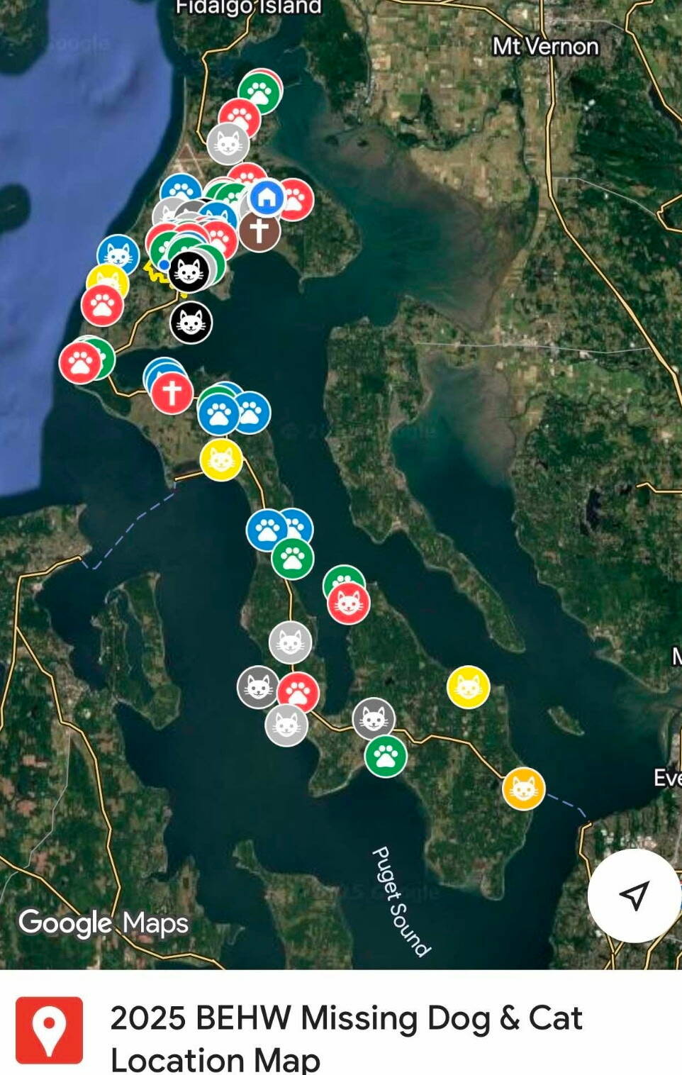 Though Bring ‘Em Home Whidbey is not a nonprofit, the group works closely with Island County Animal Control Officer Tammy Esparza to locate missing pets, reunite them with owners or bring them to Whidbey Animals’ Improvement Foundation or Critters & Co. Pet Center & Rescue when needed.