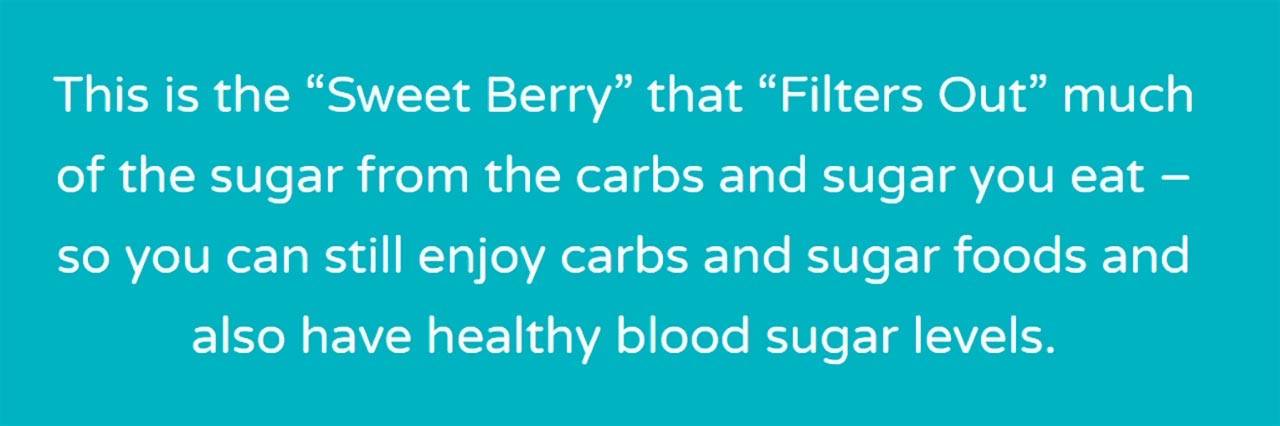 - Sweet Berry- Sweet Berry filters out glucose from the carbohydrates you consume. Sweet Berry is harvested from the White Mulberry and contains antioxidants that prevent digestion of carbohydrates into glucose. According to this program guide, you can eat Sweet Berry with any high-sugar food, and you will not have a spike in glucose levels in your bloodstream.