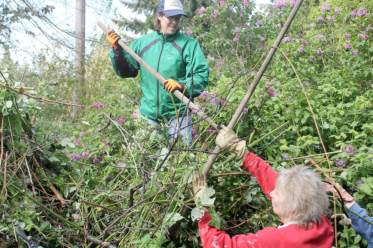 Langley resident Lenna Rose was among the more experienced volunteers at Emlee’s home. She’s volunteered with Hearts &Hammers for about 10 years. Rose helped clear out blackberry bushes and haul garbage.