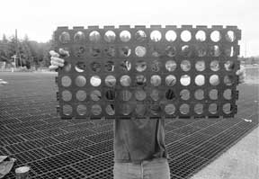 The interlocking plastic rectangles are called Geoblocks, described in Presto Products literature as a “porous pavement system.”