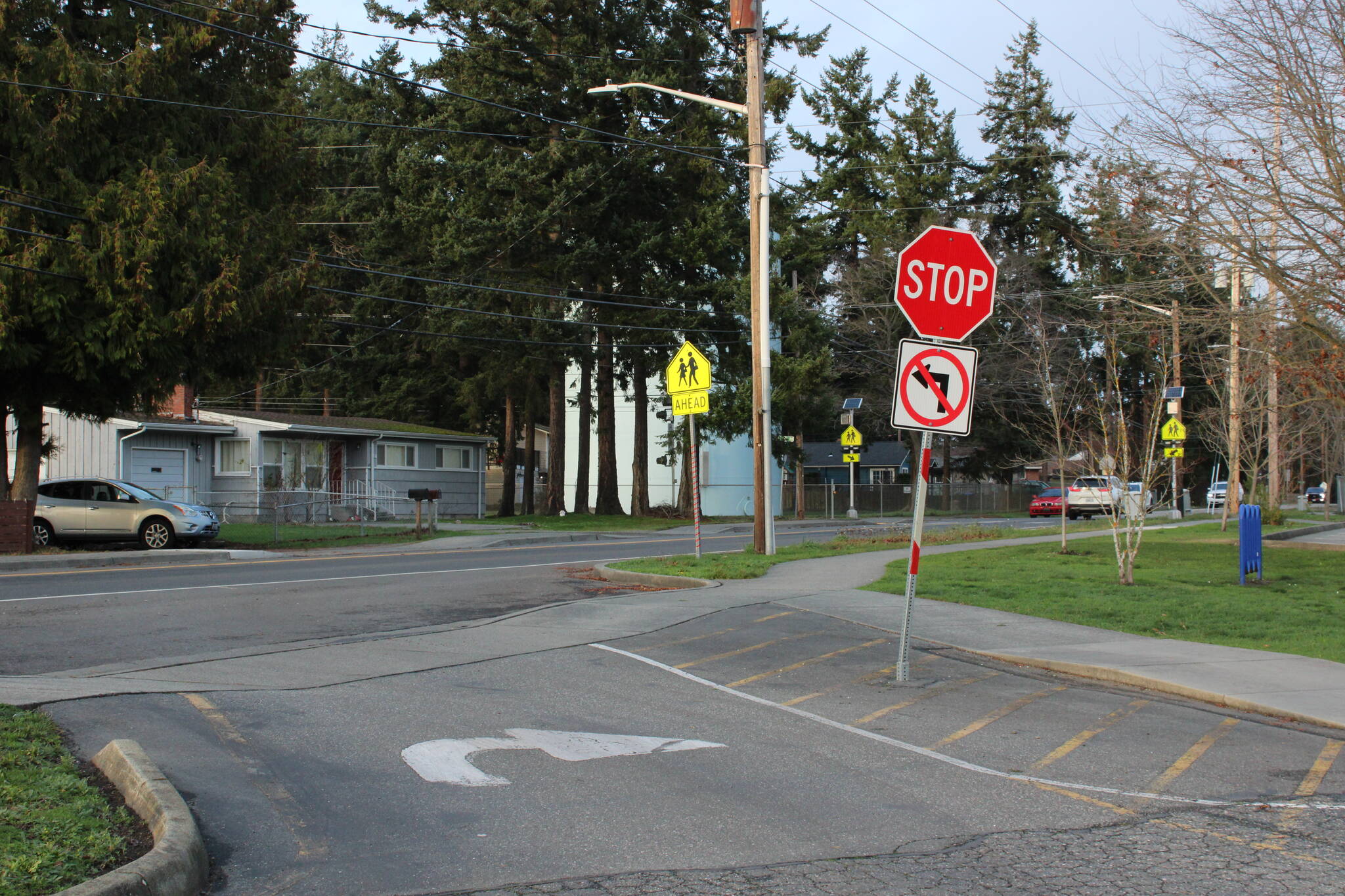 “The signs at the exit points of the parking lot are the responsibility of the property owner, so in this case, Oak Harbor Public Schools,” City Engineer Alex Warner said.