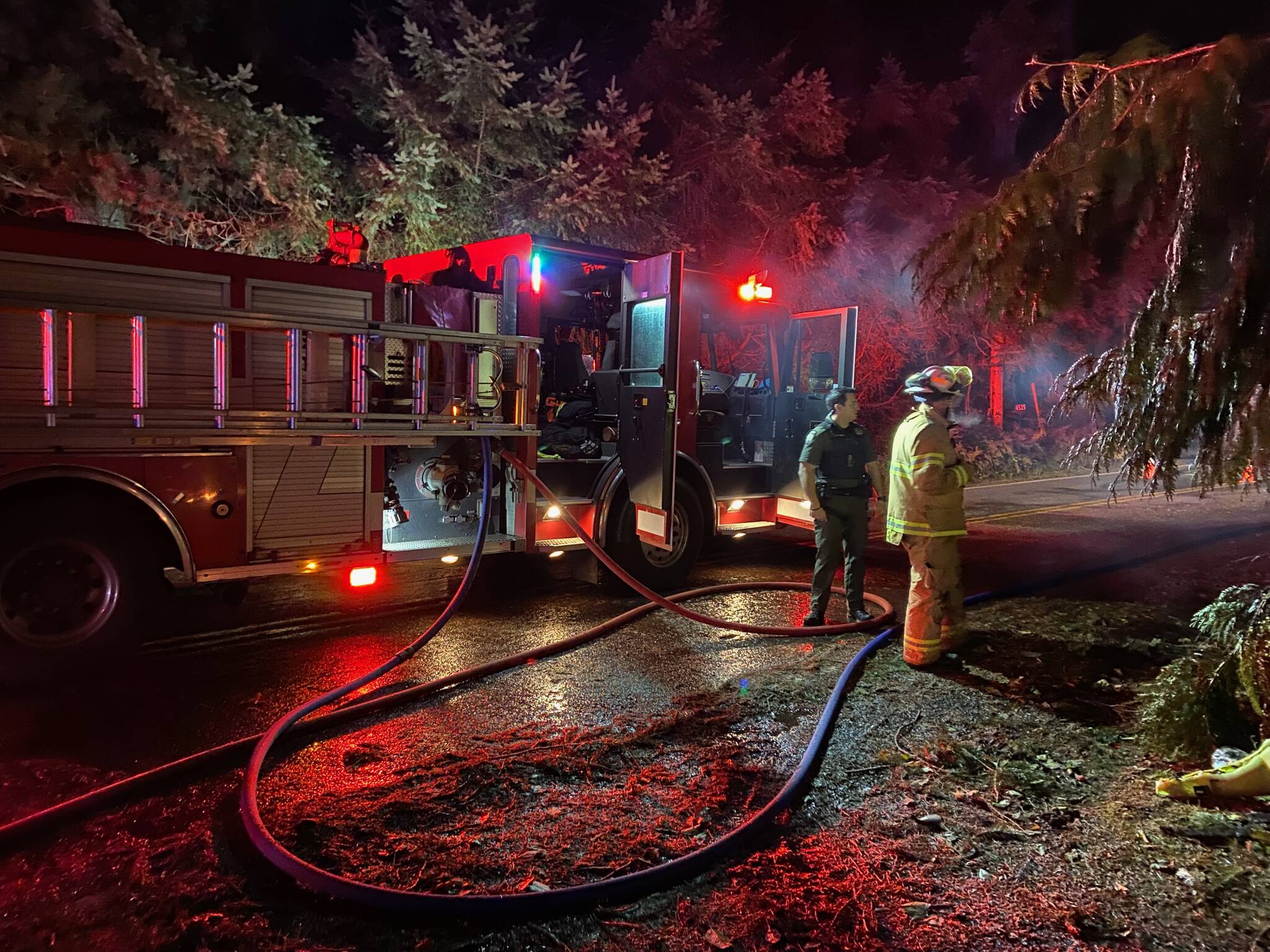 According to South Whidbey Fire/EMS, personnel responded to the Glendale Road address in Clinton at 1:45 a.m. on Dec. 2. Firefighters arrived to find a burning shed and worked swiftly to keep the fire from spreading to nearby structures – including a mobile home – and a propane tank. No one was injured.