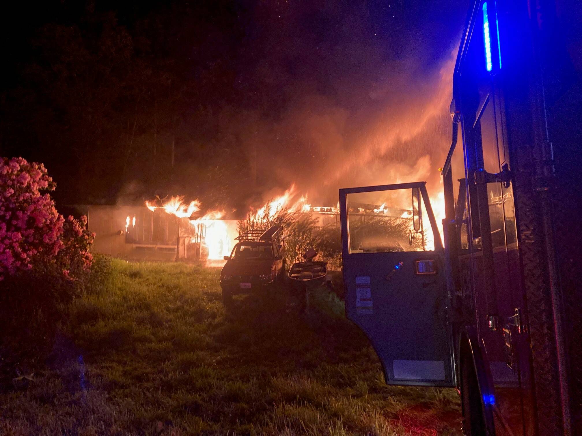 North Whidbey Fire and Rescue responded to a call about a house fire on Sunset Drive at 12:20 a.m. The agency was joined by Central Whidbey Island Fire and Rescue, the Oak Harbor Fire Department, the Navy Fire Department and the Mt. Erie Fire Department.