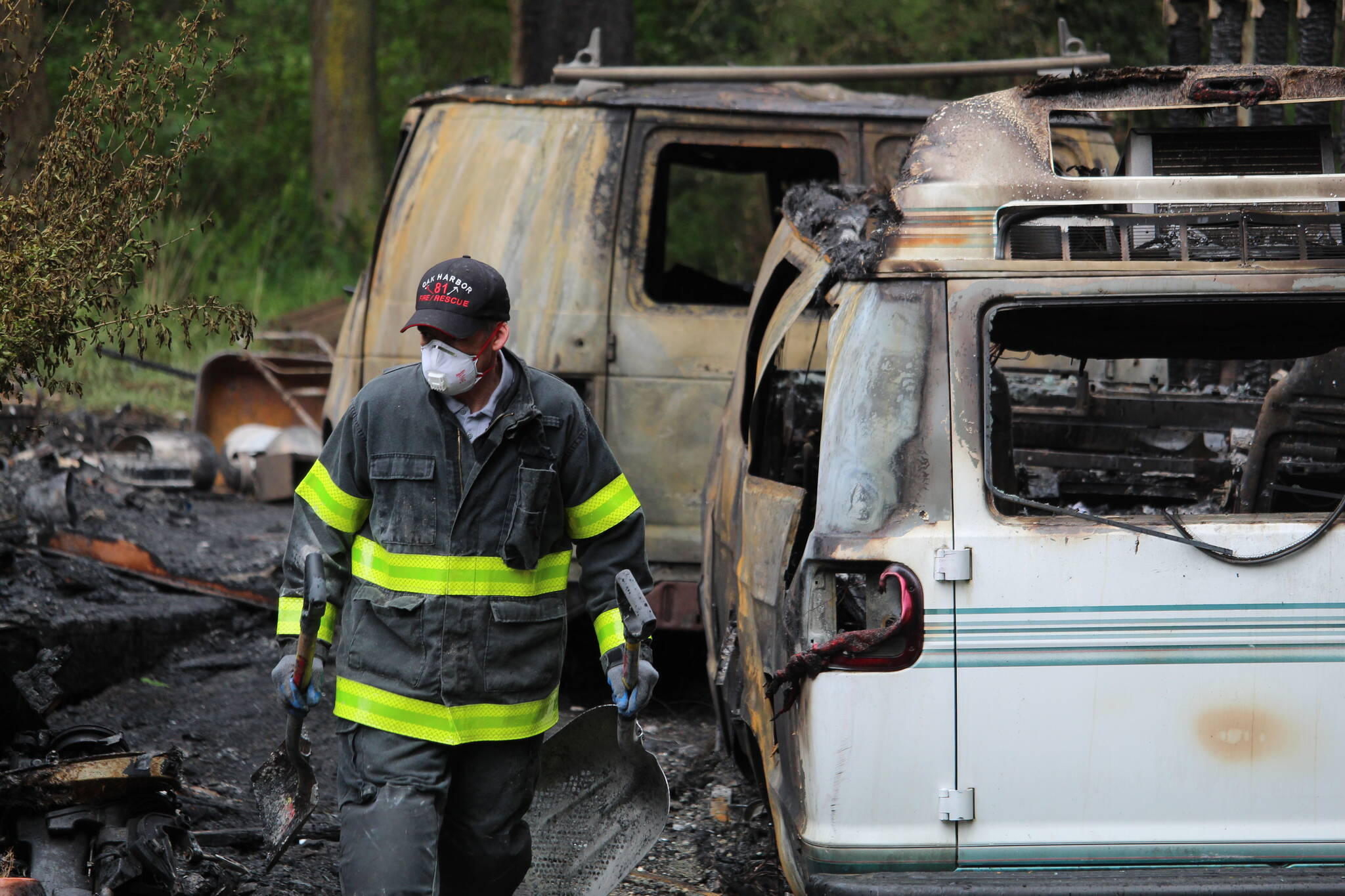 Both of the firefighters hurt were with North Whidbey Fire and Rescue. One was injured when he fell into a hole about four feet deep on the property’s lawn, which North Whidbey Fire Chief John Clark said was overgrown and difficult to navigate.