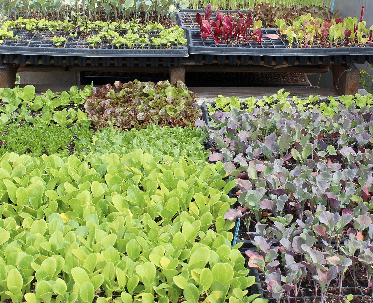 “This is an heirloom variety of spinach,” Varadi points out, walking through rows of bright green leafy bundles. “It’s grown for the seed.”