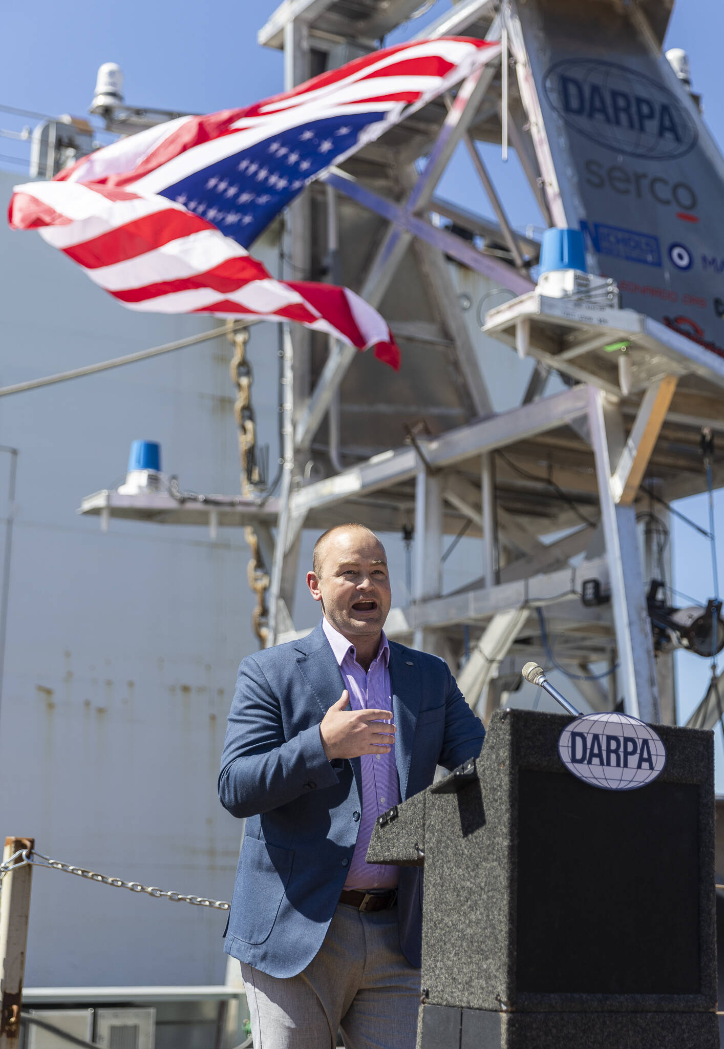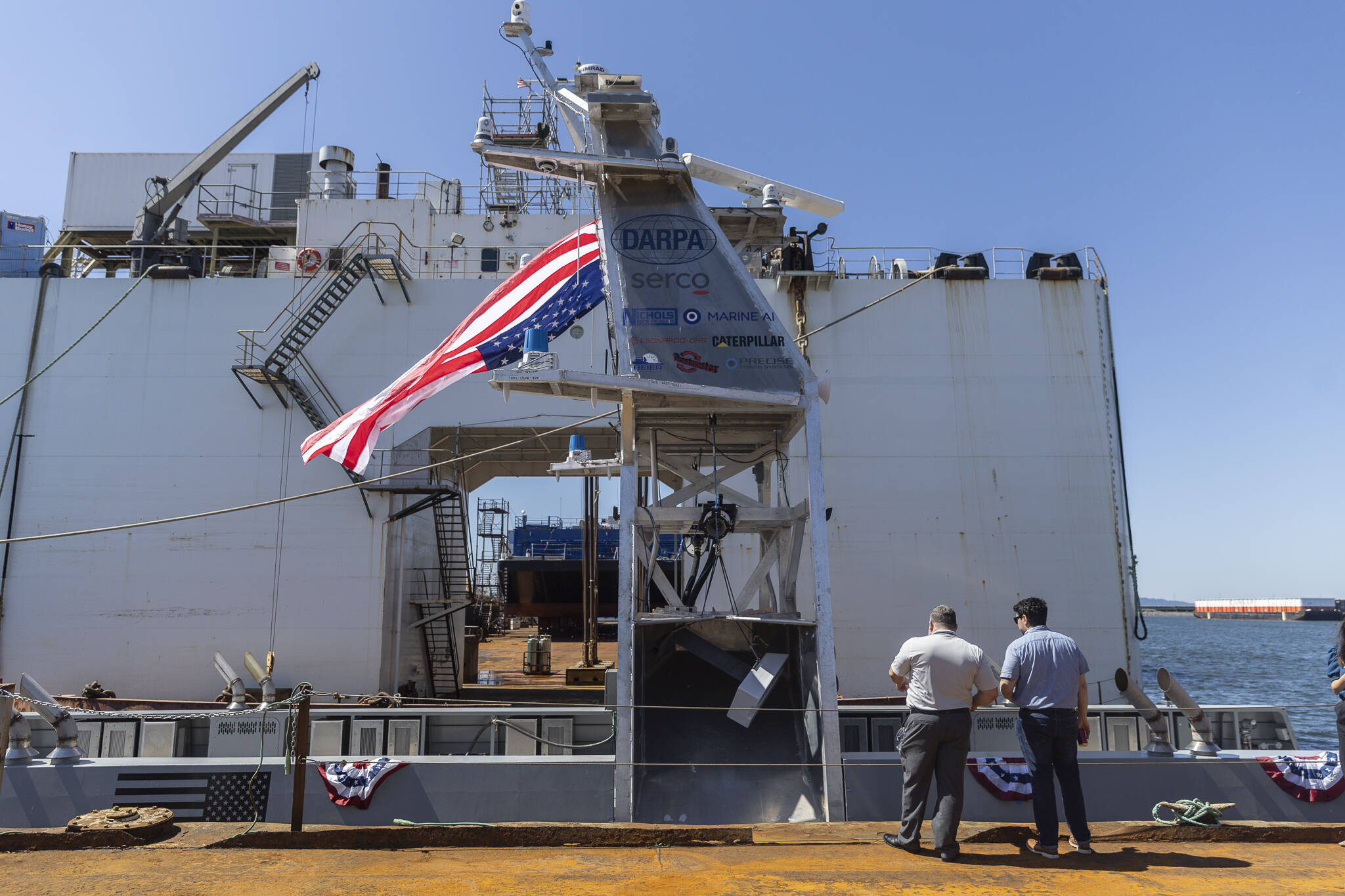 Monday’s ceremony was the prelude to its next chapter, testing the ship in oceans around the world, said Tom Watson, the CEO of Serco, a Washington D.C. area contractor responsible for developing the surface vessel under DARPA’s No Manning Required program.