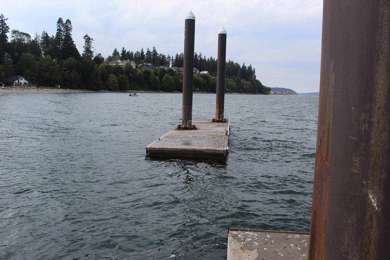 But there’s a huge gap in the L-shaped dock because two damaged floating concrete sections were hauled away for safety reasons.