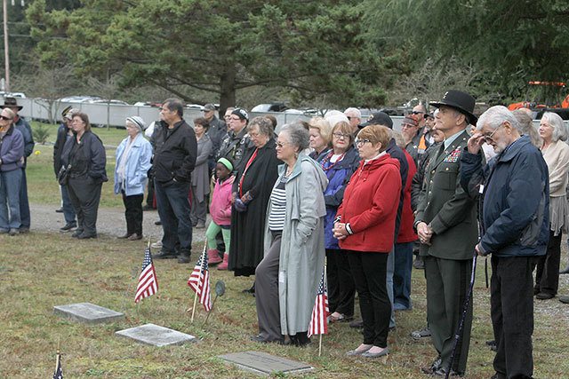 Dozens gathered for a Veterans Day service on Friday morning at the Bayview Cemetery to honor America’s armed forces.