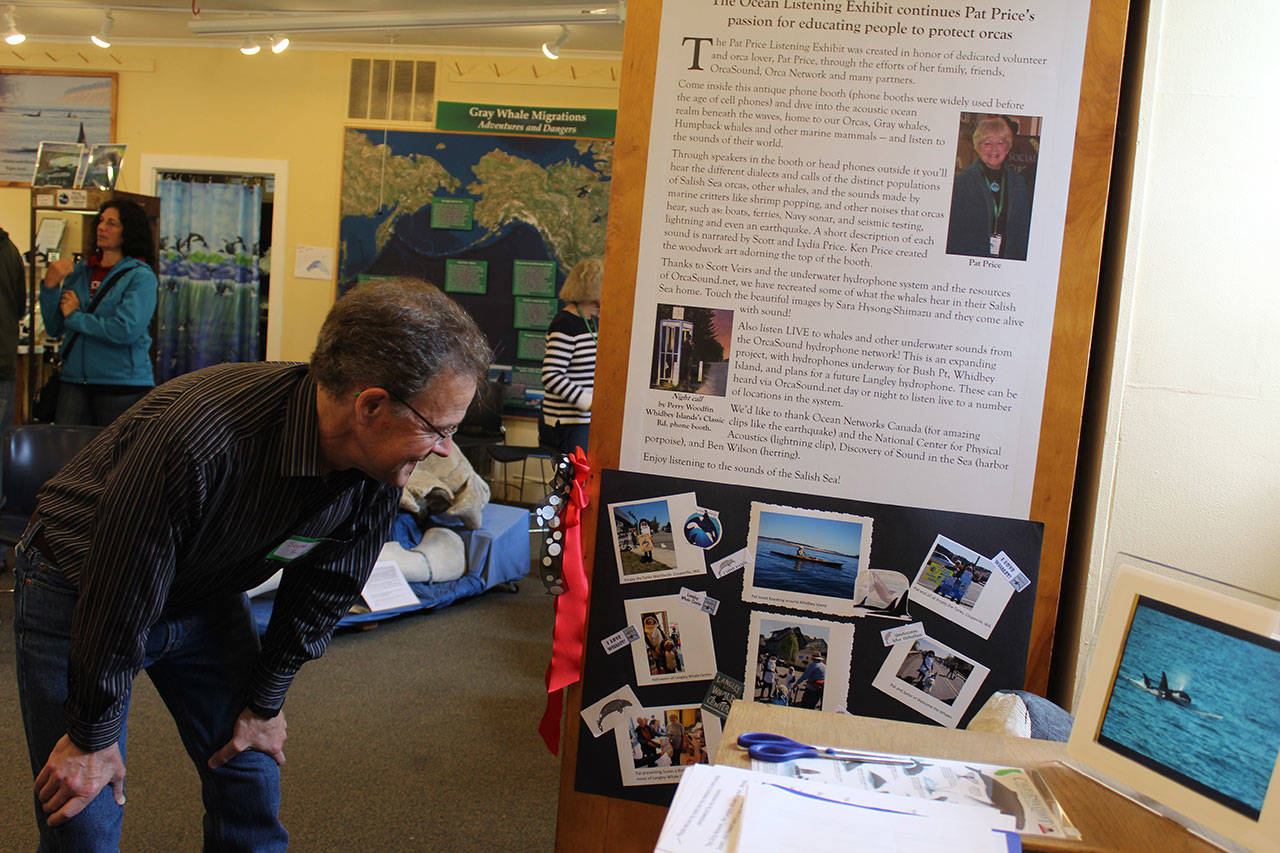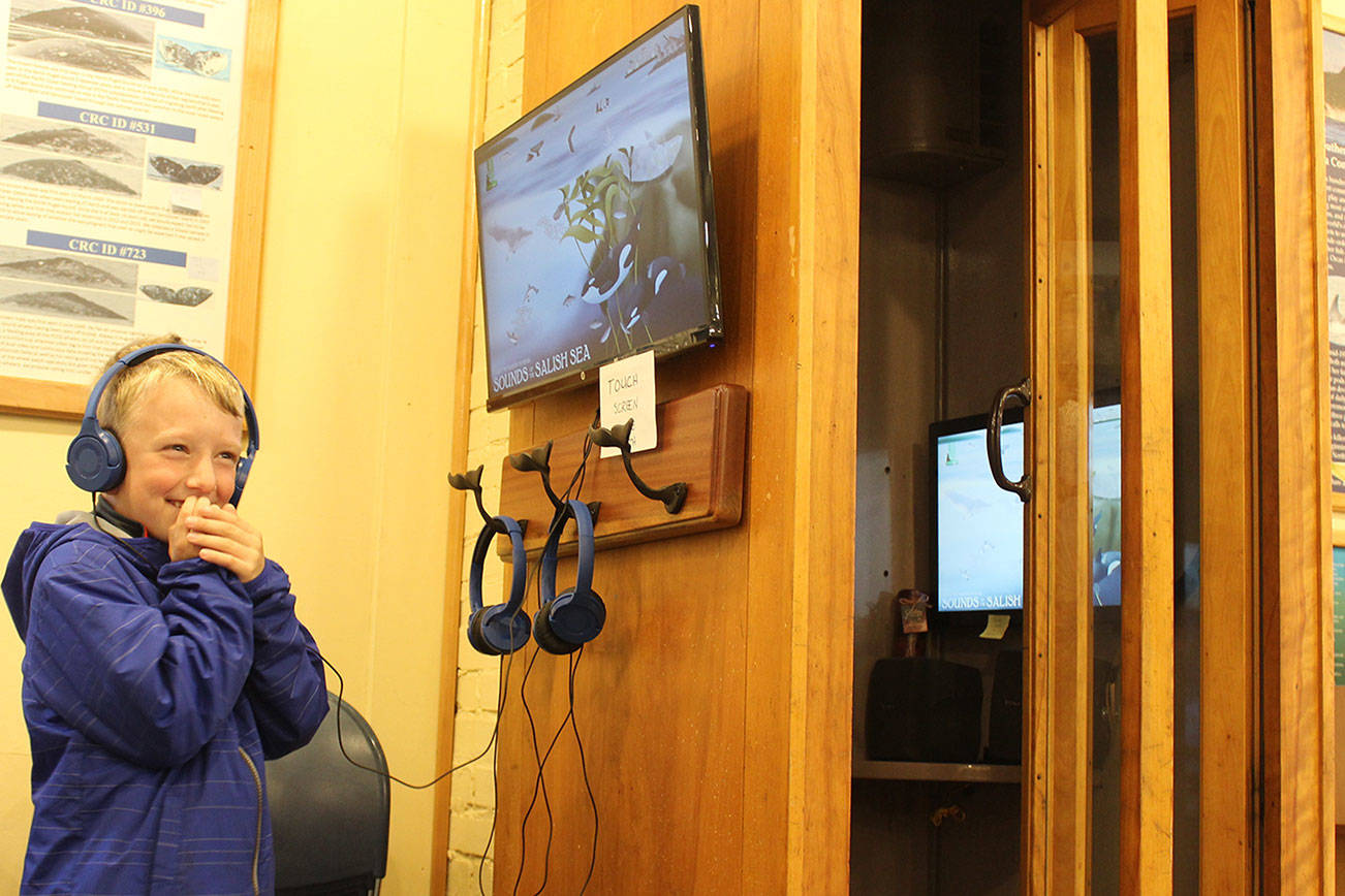 The 6-year-old boy visiting from California was trying out the new interactive underwater listening booth recently installed at Langley Whale Center.