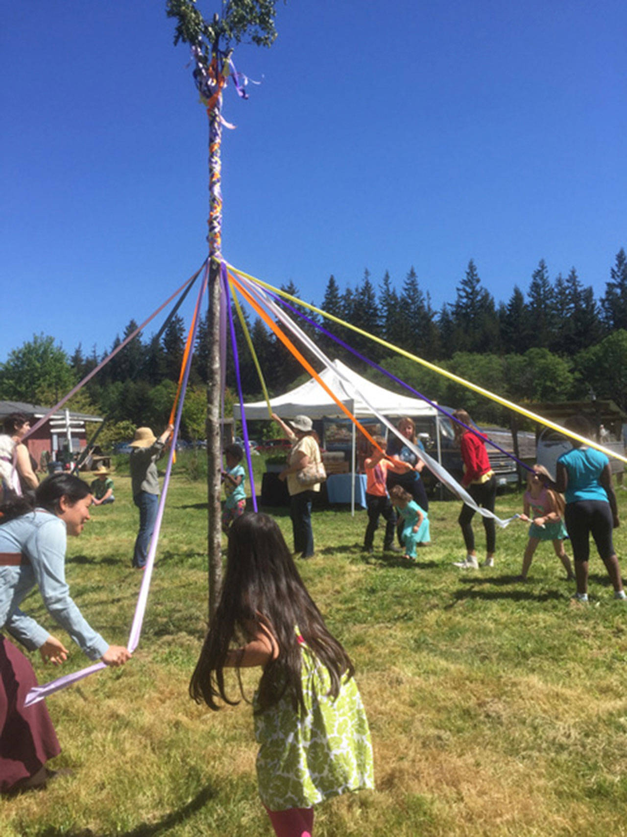 A May Pole dance begins at 11:30 a.m. followed by Earth songs by Island Strings. Hot breakfast and lunch items prepared by Chef Edward Hueneke may be purchased from the kitchen, along with organic coffee, tea, hot chocolate and cold beverages, and baked goods.