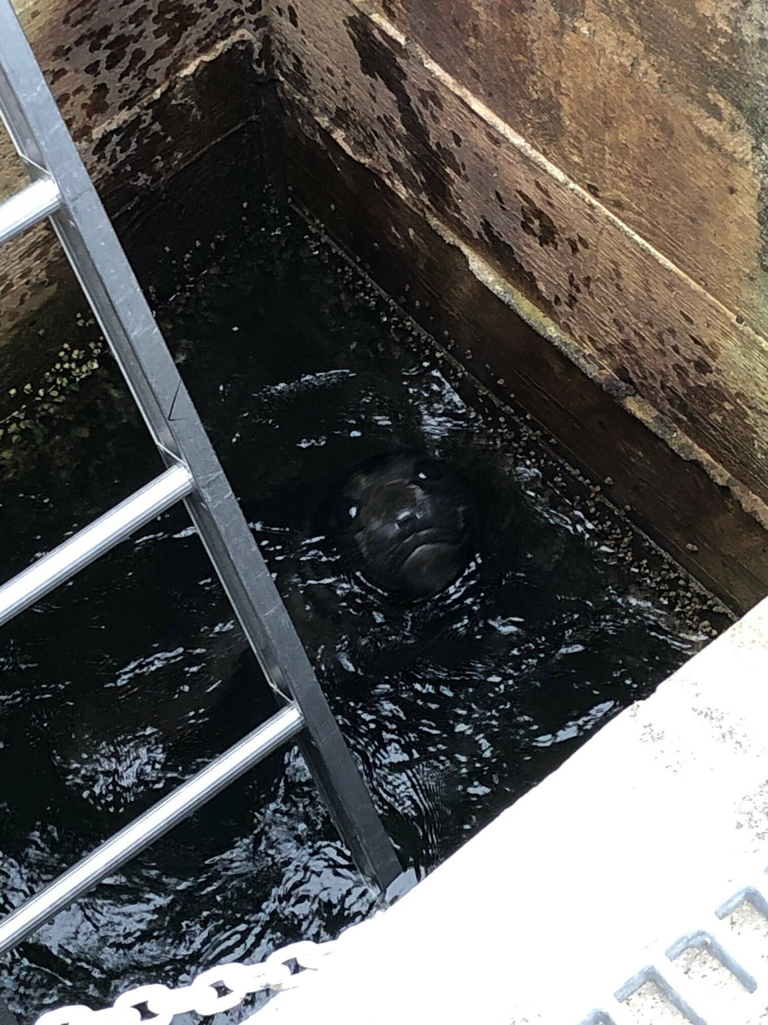 Gaylon Whiteside, a resident of the condo who watched Elwood’s rescue, wondered aloud if maybe the seal saw a fish and decided to follow it into the pipe.