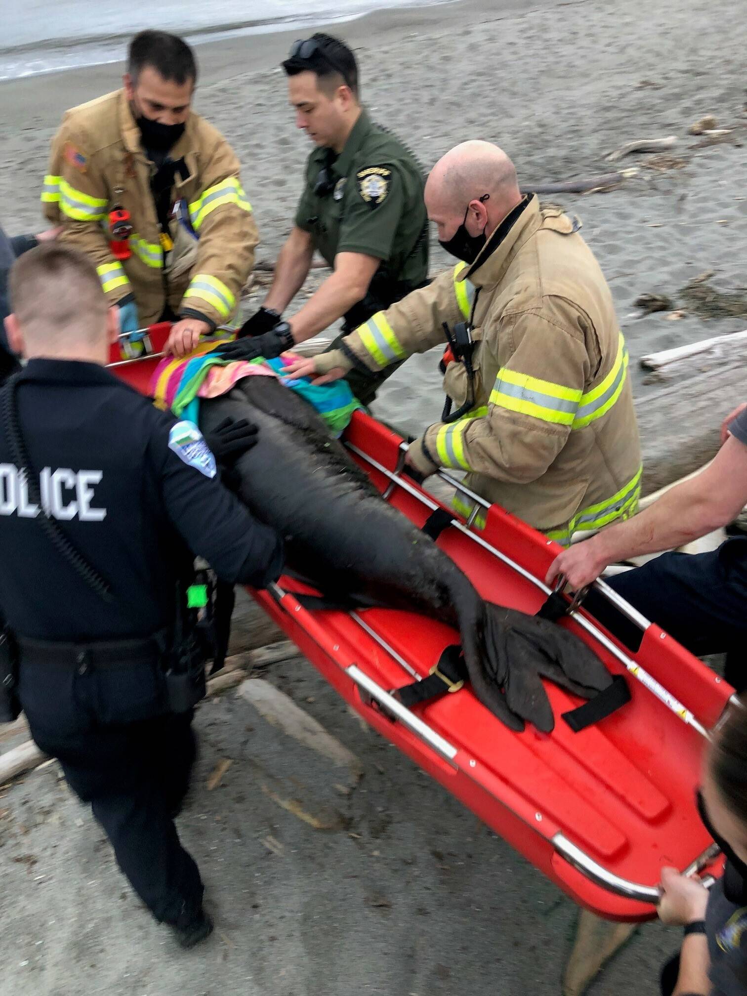 South Whidbey Fire/EMS Deputy Chief of Operations and Safety Terry Ney said he had heard theories that there was an orca just off the beach that Elwood may have been escaping from.