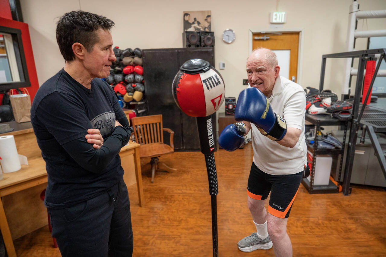 May Sinclaire, Stone’s mother, said the Parkinson’s classes are attended by the most dedicated group of people. But it’s also fun to see the men and women of the Golden Gloves class try to outdo each other and just as exciting to see the younger folks spar in the other classes.